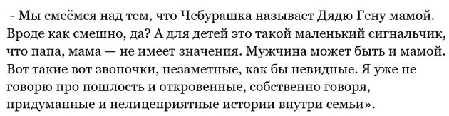 Такая «идеологическая» подложка вредна для неокрепших детских умов и оставляет неизгладимый след на годы.