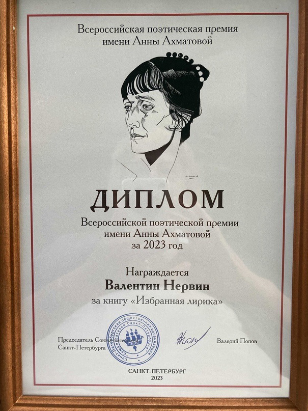 Валентин Нервин получил диплом Всероссийской поэтической премии имени Анны Ахматовой
