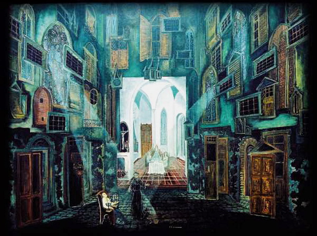 Нина Гапонова – художник высокой Духовной культуры. Эта мысль невольно возникает, если внимательно рассмотреть сразу некое совокупное количество её работ, какое можно увидеть на выставках. Благо такие персональные выставки устраивались и в Воронеже, и в Москве. На многих её эскизах вокруг центрального сценического пространства, на котором взаимодействуют актёры, находится некий внешний мир, космос, в котором своя жизнь: летят куда-то птицы, стоят миниатюрные церквушки, растут деревья, текут облака или, наконец, как в эскизах к «Хануме»: над всем условным декоративным сценическим пространством сияет радуга… Это как бы подсказка режиссёру и зрителю (если воплощение эскиза состоится): мир огромен, прекрасен, широк, не замыкается в пределах сиюмитнутного сценического пространства и предлагаемых персонажей, а значит есть выход из любой драматической ситуации.