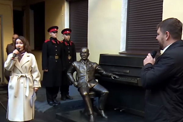 Церемония открытия первого в нашей стране памятника композитору прошла днём 4 ноября во внутреннем дворике Санкт-Петербургской детской школы искусств имени И.О. Дунаевского на Рижском проспекте.