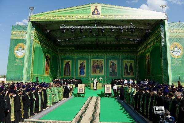 Более тридцати тысяч верующих во главе со Святейшим Патриархом Кириллом прошли 17 километров пешком до Благовещенского поля города Сергиева Посада по пути, некогда проделанным самим святым Сергием Радонежским. Вечером на Благовещенском поле было совершено всенощное бдение, а после полуночи — Божественная литургия.
