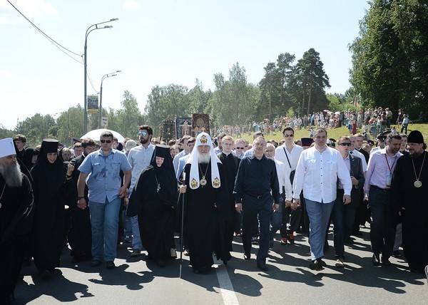В полдень многотысячный крестный ход во главе с Патриархом направился из Хотьково в Сергиев Посад. В праздничном шествии приняли участие 60 иерархов, более 400 священнослужителей, монашествующие, делегации от 80 епархий Русской Православной Церкви, казаки, паломники из разных регионов России. Главные святыни крестного хода — икона с мощами преподобного Сергия Радонежского и икона с мощами преподобных Кирилла и Марии, родителей преподобного Сергия.