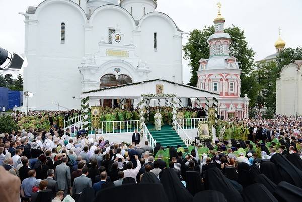 Отмечаемый ежегодно 18 июля праздник обретения честных мощей преподобного Сергия Радонежского стал в нынешнем году кульминацией торжеств, посвященных 700-летию великого русского подвижника. В День обретения мощей преподобного Сергия, игумена Радонежского, Предстоятель Русской Православной Церкви совершил Божественную Литургию на Соборной площади Троице-Сергиевой лавры перед Успенским собором.