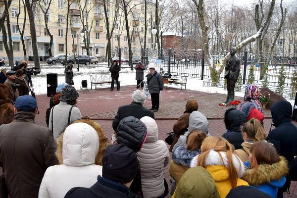 Сегодня к памятнику О.Э. Мандельштаму пришли воронежские литераторы. Среди них: председатель правления Воронежского регионального отделения Союза российских писателей Галина Умывакина, писатель, поэт и журналист Александр Бунеев, поэты Владимир Шевченко и Мария Соколовская.