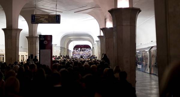 Станция «Кропоткинская» была закрыта на вход и на выход. На перроне расставляли стулья, а восточный выход превратился в импровизированную сцену.