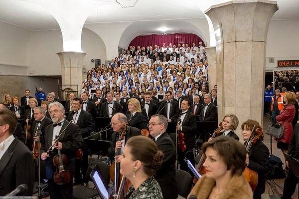 В оперном концерте на станции метро «Кропоткинская» в Москве принял участие хор из Воронежа