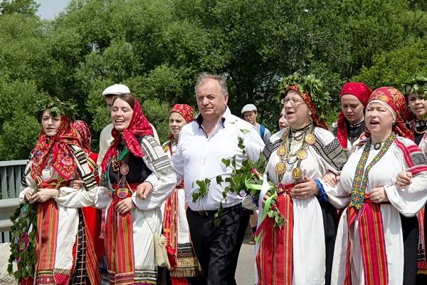 А на набережной их уже ждут: высокая сцена, прилавки Троицкой ярмарки, огромная поляна с украшенной разноцветными лентами березой в центре – вокруг неё коллективы, под руководством главы Новоусманского района Владимира Чернышова. Все водят большой хоровод. Рядом с главой – профессор Галина Сысоева, доцент Александра Самотягина, другие признанные знатоки и пропагандисты фольклора.