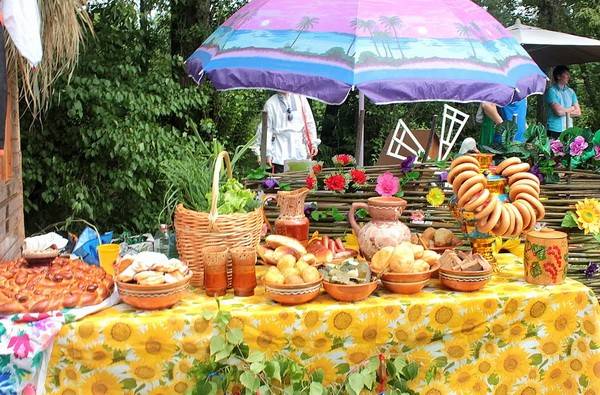 Диковинка фестиваля «На Троицу» – уклон в обычаи старины. На прилавках сельских подворий – самовары, традиционные старославянские угощения, рукодельная утварь, одежда и бижутерия. Прилюдно жарят яичницу, раздают ее всем желающим, приносят огромные кастрюли каши, приготовленной по старинным русским рецептам. Кстати, очень вкусной каши.