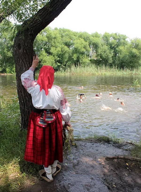 Забавно, что всего в нескольких метрах от Троицких гуляний, на пляже Усмани расположились первооткрыватели купального сезона. Колоритное получается сочетание: толпа народа, разодетая в русские народные костюмы, а в ней тут и там мелькают голые пятки.