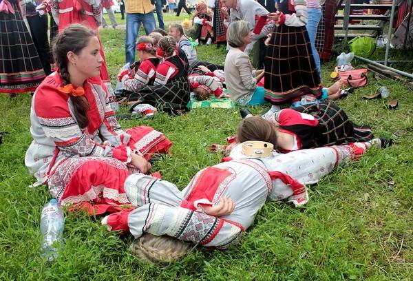 После окончания песнопений и местные жители, и приезжие собираются у здания администрации: именно здесь, по традиции, начинается яркое шествие коллективов: от центра до моста, от моста к набережной – всё под веселые песни в исполнении самих участников.