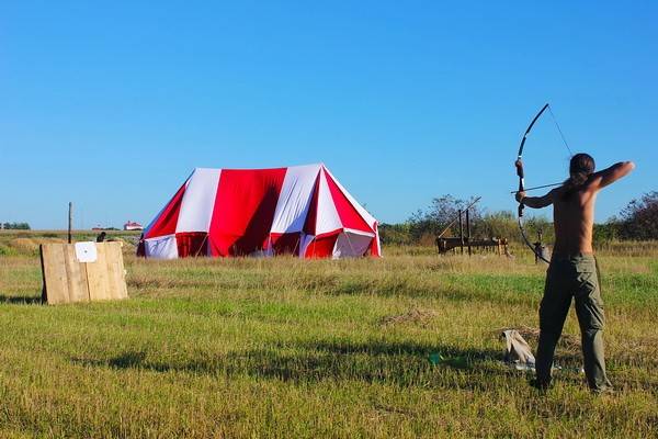 В нескольких метрах от них, расставив деревянные мишени, Михаил Клеменченко проводит обучающие занятия по метанию ножей и стрельбе из лука. Девушки здесь, кстати, тоже присутствуют, и у них получается ничуть не хуже, чем у парней.