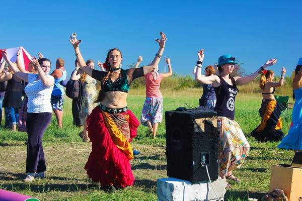 И люди продолжают получать удовольствие. Со всех сторон льются звуки непривычной для слуха этнической музыки, исполняемой на гулких барабанах, бубнах и волынках. Кто-то берет гитару и поет знакомые и любимые всем песни, из динамиков доносится завораживающая восточная музыка.
