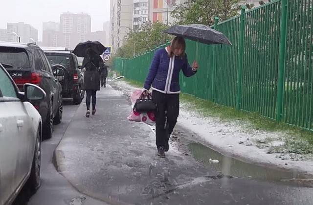 8 мая Москва оказалась во власти стихии. На протяжении всего дня шёл дождь с мокрым снегом и даже отмечен град. Осадки в виде дождя и мокрого снега, снежной крупы будут продолжаться и 9 мая. В парках и скверах восстановится небольшой снежный покров. За сутки выпадет как минимум половина месячной нормы осадков, а за два дня – более 80%.