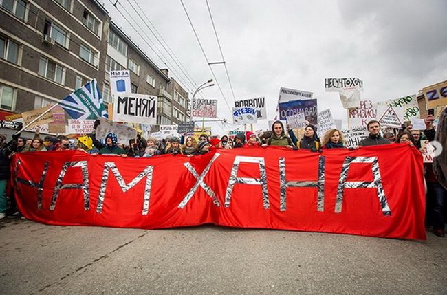 В Новосибирске Монстрация прошла под лозунгами «Нам хана» и «Городу нужны мы, а не эта тряпка»