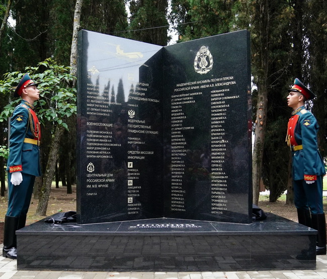 В Сочи открылся мемориал погибшим при крушении Ту-154 над Черным морем 25 декабря 2016 года. Памятную стелу открыли родственники погибших, представители министерства обороны и общественности.