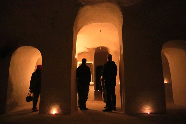 По окончании спектакля гости могли посетить пещерный комплекс в Больших Дивах. Путь по лестнице освещал свет факелов, а внутри коридоры пещеры украшало множество горящих свечей. Особую атмосферу создавала духовная музыка – запись песнопений монастыря, на территории которого находится один из старейших пещерных храмовых комплексов.