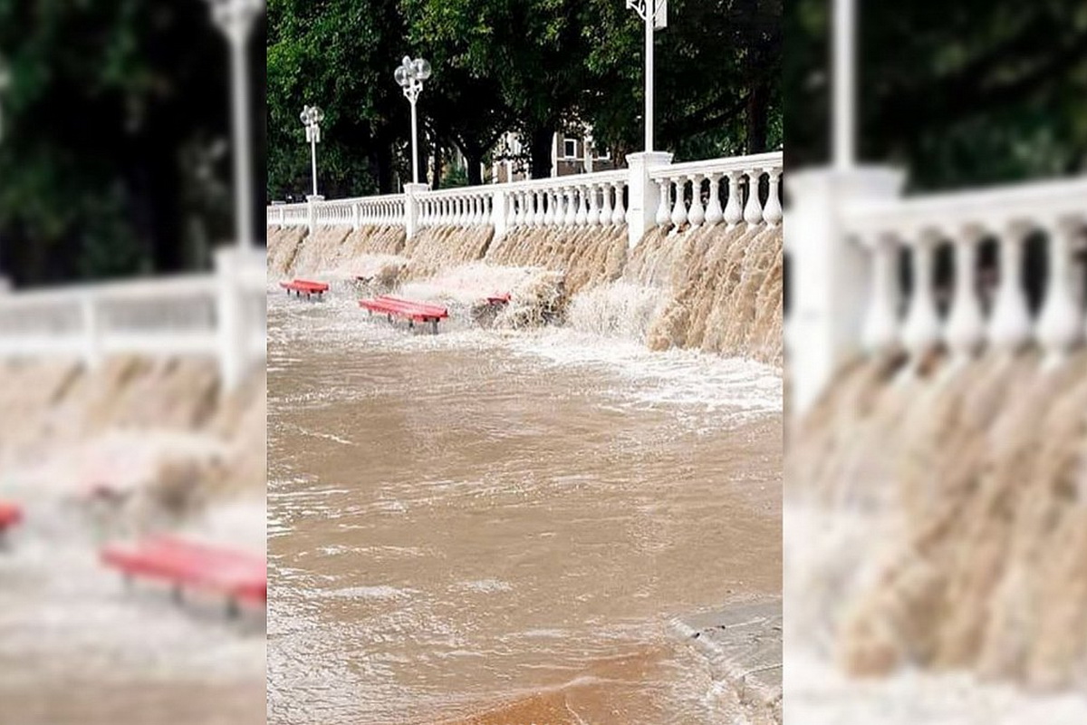 Сегодня стихия накрыла Геленджик. В пабликах соцсетей и на YouTube можно увидеть последствия сильнейшего ливня. Вода смывает городскую набережную и уносит в море песок пляжа. В нынешнем сезоне подобный случай не единственный.