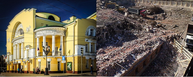 Но это были ещё цветочки по сравнению с тем, что началось после ухода в Москву Алексея Гордеева. Чуть ли не каждый месяц принимаются новые решения о судьбе театра – от «непременно сохранить» до «обязательно снести» Периодически обалдевшей и дезориентированной общественности подбрасывают мысль, что сохранить это здание уже нельзя. Да и поднимать его надо, чтобы соответствовало архитектурному облику центра города, «убитого» небоскрёбами.