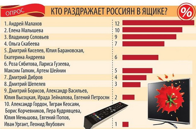 Рейтинг самых надоевших телеведущих возглавили Андрей Малахов, Елена Малышева и Владимир Соловьёв