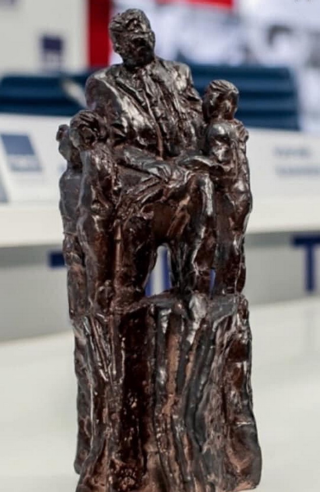 Корреспондент канала «Россия К» обратился к автору монумента Георгию Франгуляну с предложением: «Вы не могли продемонстрировать эту скульптуру?»