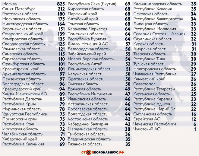 Регионы-лидеры по числу заболевших за последние сутки: Санкт-Петербург (212 случаев), Ростовская область (180), Нижегородская область (164), Московская область (175), Воронежская область (151), Ставропольский край (139), Свердловская область (125), Самарская область (115), Кемеровская область (135), Ульяновская область (121).
