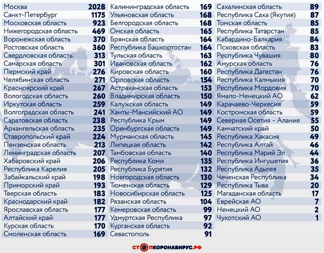 Санкт-Петербург (1175 случаев), Московская область (923), Нижегородская область (469), Воронежская область (370), Ростовская область (360), Свердловская область (313), Самарская область (301).