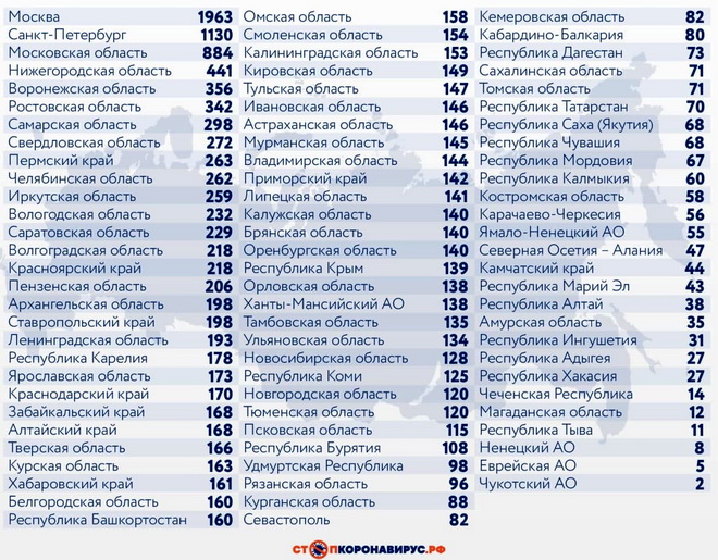 Санкт-Петербург (1130 случаев), Московская область (884), Нижегородская область (441), Воронежская область (356), Ростовская область (342), Самарская область (298), Свердловская область (272).