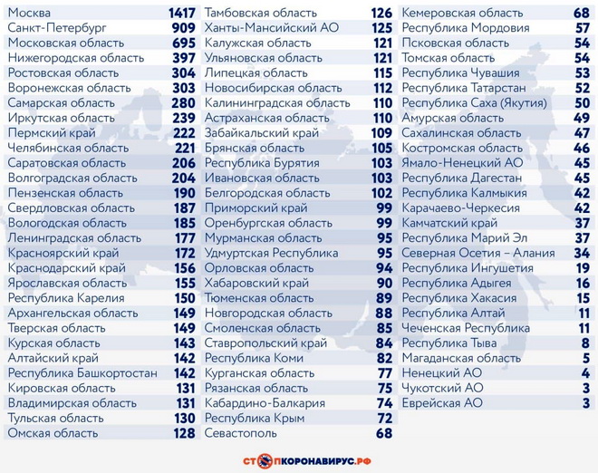Санкт-Петербург (909 случаев), Московская область (695), Нижегородская область (397), Ростовская область (304), Воронежская область (303), Самарская область (280).