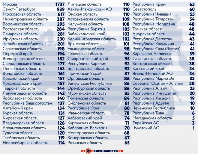 Санкт-Петербург (939 случаев), Московская область (617), Нижегородская область (387), Воронежская область (295), Ростовская область (284), Самарская область (281).