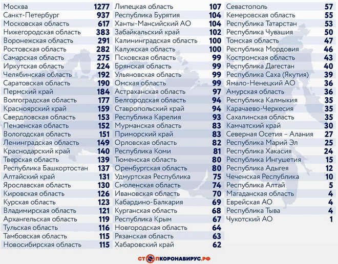 Санкт-Петербург (937 случаев), Московская область (617), Нижегородская область (383), Воронежская область (291), Ростовская область (282), Самарская область (275).