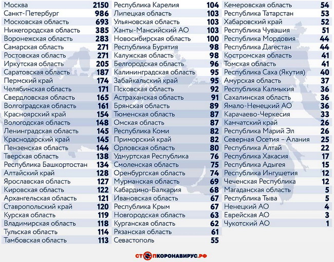 Санкт-Петербург (986 случаев), Московская область (693), Нижегородская область (385), Воронежская область (283), Ростовская область (271), Самарская область (271).