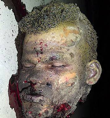 Судя по всему, это человек европейской внешности. Очевидцы утверждают, что он был одет в черную куртку и черную вязаную шапочку. Приведя в действие взрывное устройство, он буквально разлетелся на куски. После взрыва от смертника осталась только голова, да и та повреждена.