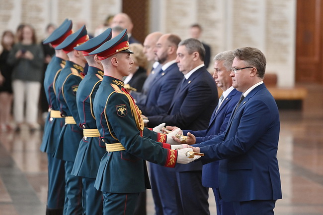 – В вашем лице хочу передать низкий поклон всем героическим землякам и тем, кто нерушимой стеной стоял на защите своего Отечества в годы Великой Отечественной войны и тем, кто сегодня принимает участие в специальной военной операции, защищая безопасность, суверенитет независимости своей страны. Я думаю, что сегодняшняя торжественная церемония – это важный шаг для сохранения нашей памяти, для увековечивания славы, для передачи эстафеты детям и внукам, знак уважения наших предков и поклонения к их великому подвигу. И те клинки, которые вы сегодня получаете и везете в свои города – они также станут подтверждением единства всех поколений и нашего единства, в частности, символом ответственности за судьбу нашей великой Родины. Я еще раз хочу от души поздравить с этим знаковым событием и с наступающим праздником – Днём России, пожелать жителям городов Воинской Славы, всем жителям нашей страны мира, благополучия и процветания, – обратилась к главам городов Валентина Матвиенко.