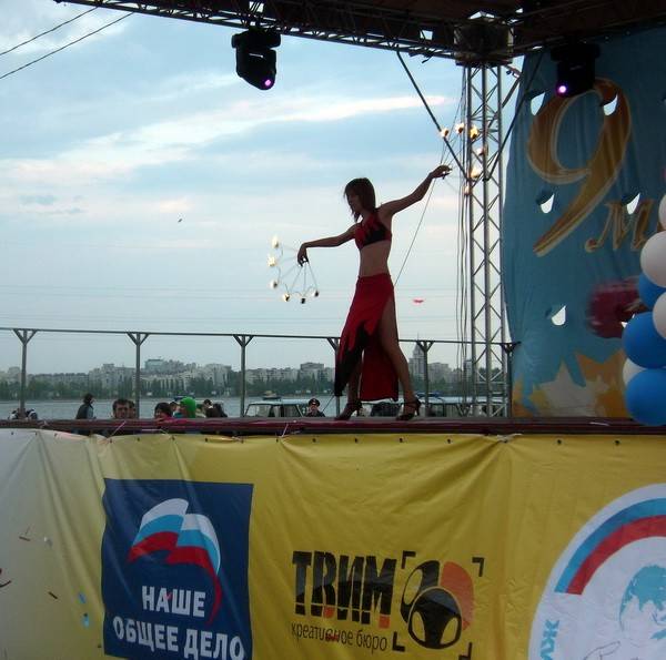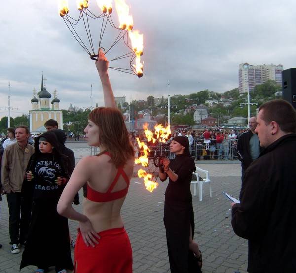 Выступали солисты, дуэты и театры огня. Воронеж был представлен коллективом Smile Fire. Как сказал его руководитель Евгений Лиженин, он впервые увидел поддержку и внимание на таком уровне. А ведь их искусство развивает силу, реакцию, выносливость, грацию. Слова Евгения перекликаются с тем, что накануне сказал организатор фестиваля координатор проектов организации «Наше общее дело» Виктор Буздалин.