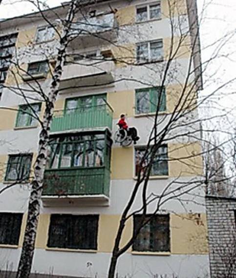 Живет воронежец в панельной пятиэтажке, на верхнем этаже. По свидетельству друзей – словно в тюрьме. Ведь выбраться отсюда на улицу самостоятельно невозможно. Устав несколько лет ждать от властей, когда они придут ему на помощь, Бибиков сконструировал собственный лифт-подъемник. Потребовались смекалка, помощь приятелей и 20 тысяч рублей. Теперь Дмитрий может покидать квартиру и гулять на воздухе. Воодушевленный, он мечтает обрести собственный дом, в котором обязательно будут пандусы и другие приспособления для передвижения людей с ограниченными возможностями.