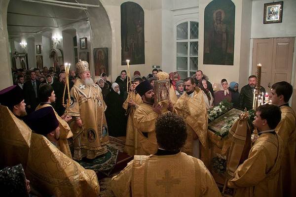 Его Высокопреосвященству сослужили секретарь Воронежского епархиального управления протоиерей Андрей Скакалин, благочинный Семилукского церковного округа протоиерей Василий Попов и клирики благочиния.