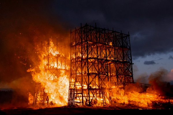 По случаю Масленицы 13 марта в арт-парке «Никола-Ленивец» в Калужской области предали огню титанический объект, напоминающий замок. Подобное здесь проделывают каждый год. В прошлом году сожгли гигантский мост, а до этого – католический собор.
