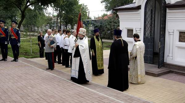 Заупокойная служба о вождях и воинах, за Веру, Царя и Отечество живот свой положивших, прошла по благословению Высокопреосвященнейшего Сергия, Митрополита Воронежского и Борисоглебского. На приглашение откликнулись главный федеральный инспектор по Воронежской области А.М. Солодов, заместитель председателя Воронежской областной думы И.В. Транькова, чиновники управления культуры города, представители областной и городской администрации, управления культуры городского округа город. Воронеж, Воронежского Михайловского Кадетского Корпуса, Института ФСИН, казаки, общественность города. Воронежский гарнизон предоставил военный оркестр и почётный караул.