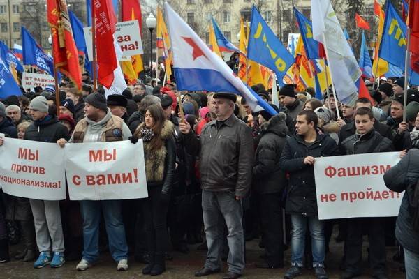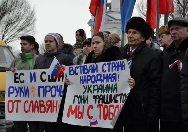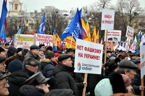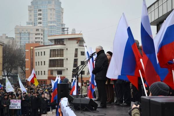 Плохая погода не помешала воронежцам 4 марта провести митинг в поддержку братского украинского народа и русскоязычного населения Украины. По разным данным, на Советской площади собралось от 5 до 8 тысяч человек.