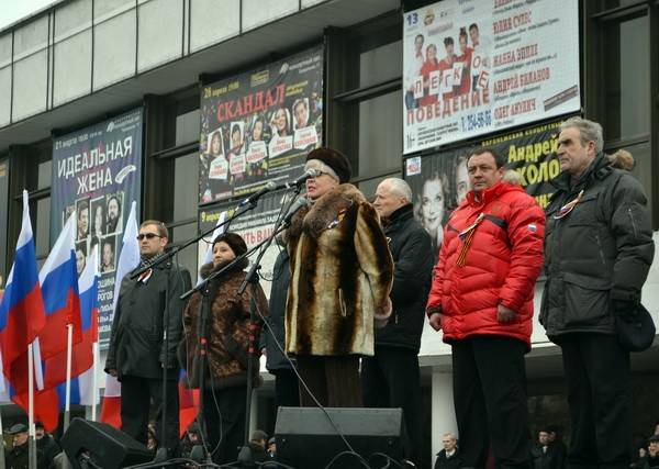 В свою очередь центральной идеей выступления заместителя председателя областной общественной палаты Любови Шевляковой стало осуждение творящегося на украинской земле хаоса. Протестуя против жестокости, главной задачей она объявила прекращение насилия. Солидарна с ней была и народная артистка России Екатерина Молодцова, призывавшая к мирному и бескровному урегулированию конфликта.