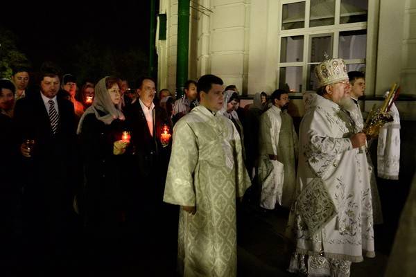 После Крестного хода под звон колоколов Митрополит Воронежский и Лискинский Сергий совершил в Благовещенском соборе Воронежа Пасхальную Заутреню и Божественную литургию.