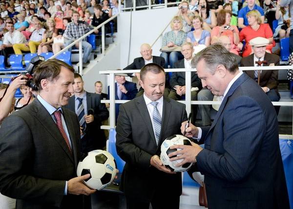 Затем началась торжественная церемония открытия современного спортивного комплекса «Звездный», построенного в рамках целевой программы «Газпром – детям». На мероприятии присутствовал прибывший в Воронеж генеральный директор ООО «Газпром трансгаз Москва» Вячеслав Михаленко.