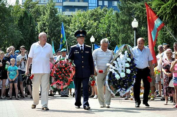После торжественного открытия памятника «Воронежцам воинам-интернационалистам - участникам локальных войн и военных конфликтов» участники празднования Дня Воздушно-десантных войск переместились к традиционному месту встречи – скверу у памятника первому десанту на улице Генерала Лизюкова.