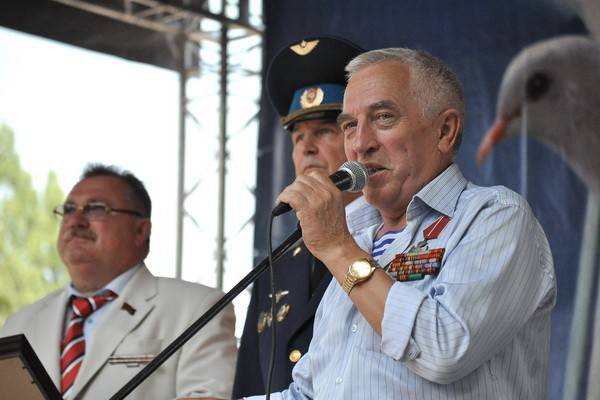 Павел Поповских приветствовал со сцены всех собравшихся, отметив, что десантникам удалось отстоять это место, где теперь парк и памятник работы Владимира Петрихина.