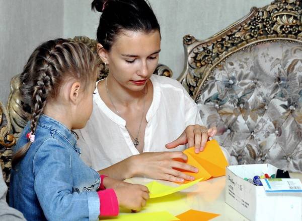 А во вторник, когда погода подкачала, занятия проводились в помещении. Преподаватель гимназии имени Басова Алла Генриховна Белоусова и ее ассистенты учили ребят делать оригами на основе точных расчетов.