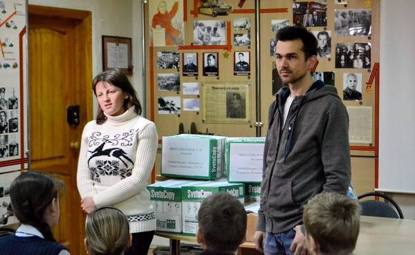 Такое проявление человечности не могло не растрогать представителей общественного объединения «Жители Донбасса», которые взяли на себя ответственность доставки собранной помощи по назначению. Роман и Людмила горячо поблагодарили ребят за все, что они сделали, и немного рассказали им о сложившейся на Востоке Украины гуманитарной ситуации. Они особенно подчеркнули нужность собранных учебных принадлежностей в тяжелых экономических условиях. Крайне острой в военное время остается проблема продолжения обучения детей, особенно дошкольного и младшего школьного возраста. По сути, отбирая образование, война отбирает у них и само будущее.
