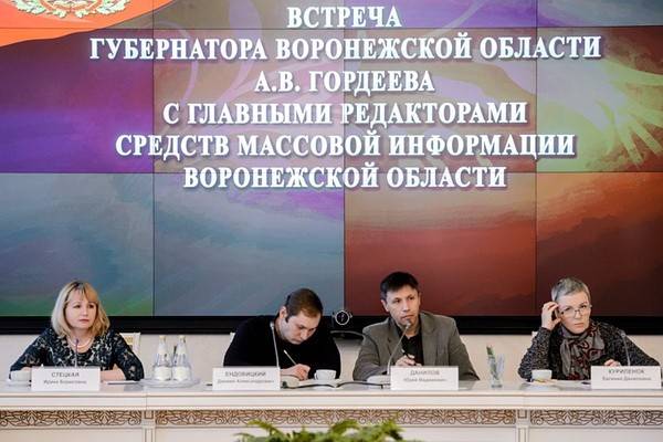 Традиционная предновогодняя встреча губернатора Воронежской области Алексея Гордеева с руководителями местных средств массовой информации прошла 26 декабря в зале на шестом этаже здания регионального правительства.