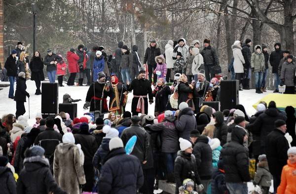 Зрителей приветствовали скоморохи и фольклорные ансамбли. По периметру площади раскинулась ярмарка, где можно было купить съедобное и несъедобное. Воронежцы забавлялись, стреляя из лука, катаясь на лошадях, спускаясь со снежных горок.