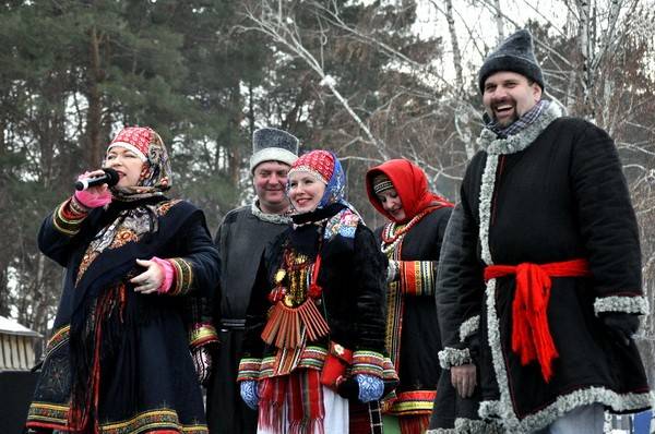 Богатыри и ухари поднимали гири и залазили на масленичный столб за ценными призами.