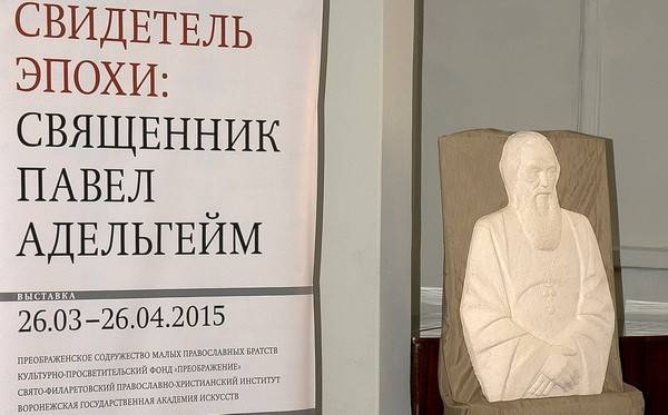 «Свидетель эпохи: священник Павел Адельгейм» - воронежский вариант наименования выставки, открывшейся 26 марта в центре города в главном корпусе Воронежской Академии искусств (в здании бывшей Мариинской гимназии, пр. Революции, 32). Она посвящена нашему современнику, исповеднику веры отцу Павлу Адельгейму. Он ушел из жизни, фактически, через несколько дней после своего 75-летия. Мученически погиб, исполняя, по словам патриарха Кирилла, до конца свой «пастырский долг готовности прийти на помощь любому человеку».